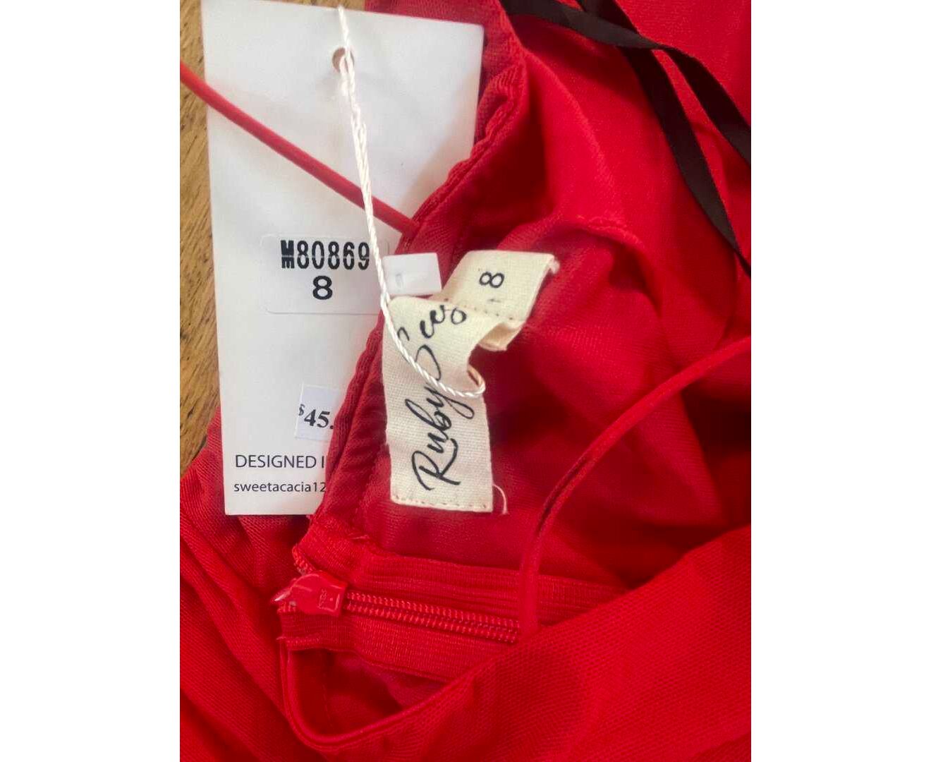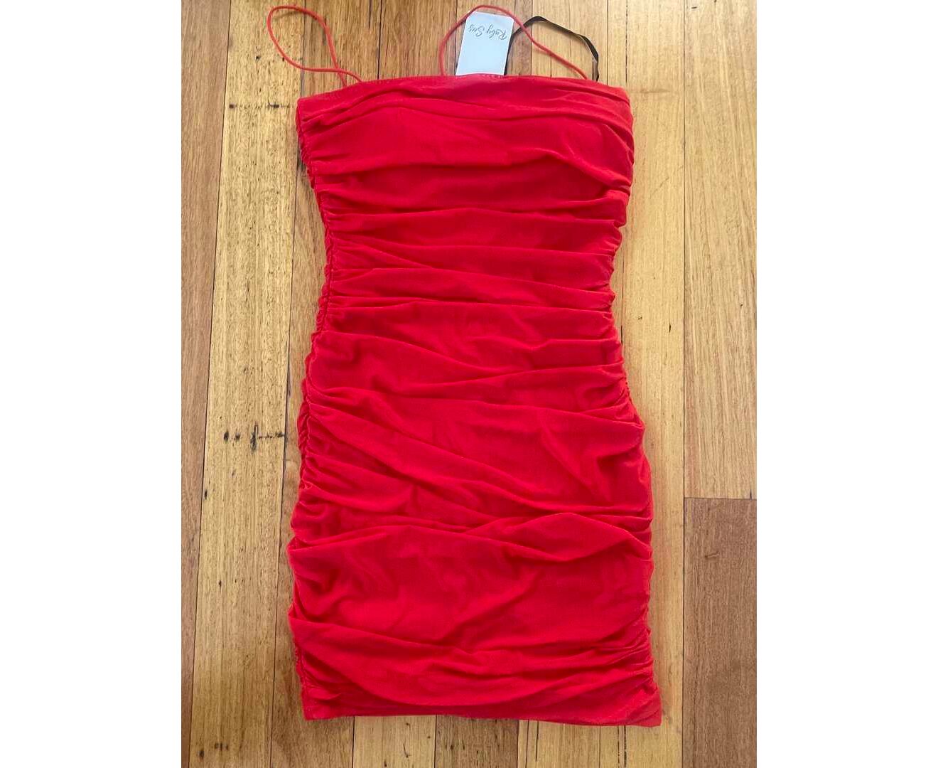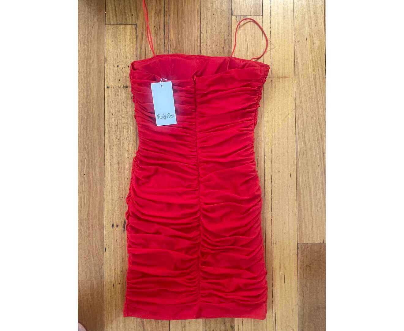 New with tags RUBY SEES Red Ruched Women's Mini Dress Stretchy Size 8 M80869